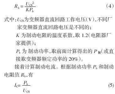 因此,根據(jù)制動電阻值Rb 和制動電流IC,按25%的暫載率來選擇電阻器即可滿足制動要求。