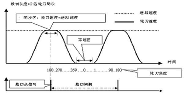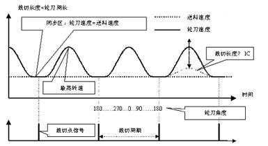 精確的計算、控制,務(wù)求在裁刀速度上升到與進料速度同步的同時,裁切刀輪也恰好進入同步區(qū)域。