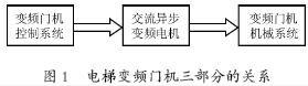 交流異步變頻門機(jī)通常簡稱為變頻門機(jī),其構(gòu)成主要分為三部分:變頻門機(jī)控制系統(tǒng)、交流異步變頻電機(jī)、變頻門機(jī)機(jī)械系統(tǒng)[2],三部分的關(guān)系如圖1所示。