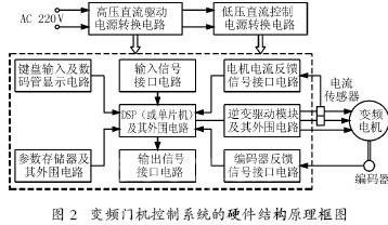 對于不同廠家的電梯,變頻門機(jī)控制系統(tǒng)的具體設(shè)計(jì)會(huì)有所不同,但結(jié)構(gòu)原理是基本一樣的,圖2 即為變頻門機(jī)控制系統(tǒng)的硬件結(jié)構(gòu)原理框圖。