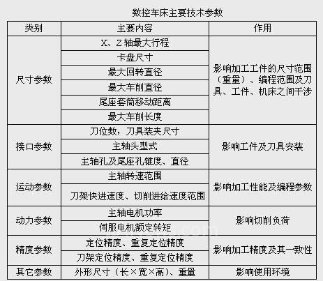 數(shù)控車床的主要技術(shù)參數(shù)包括最大回轉(zhuǎn)直徑、最大車削長度、各坐標(biāo)軸行程、主軸轉(zhuǎn)速范圍、切削進(jìn)給速度范圍、定位精度、刀架定位精度等。