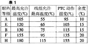 說明:PTC熱敏電阻的動作溫度tr是出廠時(shí)的溫度值,在此溫度時(shí),熱敏電阻阻值將發(fā)生急劇變化,引起控制元件動作,起到保護(hù)作用。保護(hù)裝置動作溫度,建議采用表1數(shù)值。