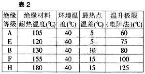 一般低壓電機(jī)廣泛采用E級絕緣,最高允許溫度為120℃,減去環(huán)境40℃,最高溫升為80℃;而高壓大、中型電機(jī)采用B級絕緣,最高允許溫升為90℃。不同等級絕緣標(biāo)準(zhǔn)規(guī)定見表2。