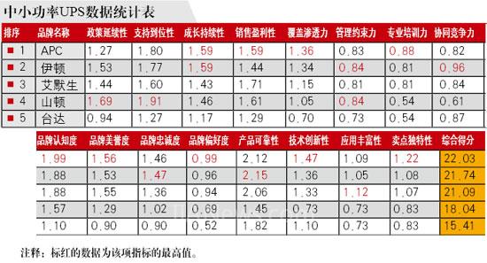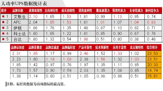 品牌力成為本屆渠道冠軍固守陣地的利器。在大功率段,艾默生以6.31分獲得單項綜合第一;而中小功率段獲得第一的是APC,得分為6.00分。