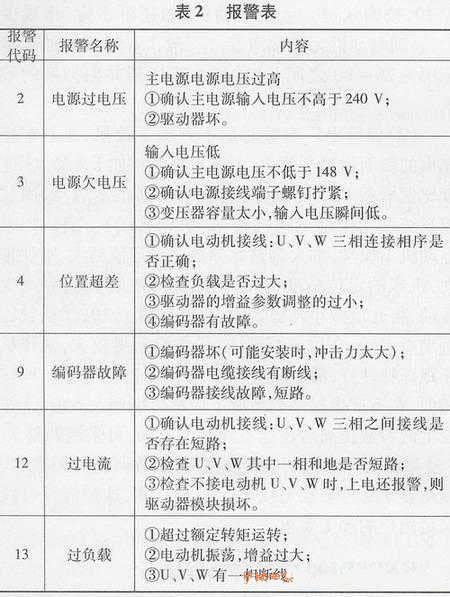 此外,還可以利用報(bào)警表(表2)提示來(lái)處理故障。