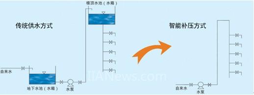 如圖一傳統(tǒng)供水方式和智能補(bǔ)壓方式的區(qū)別。