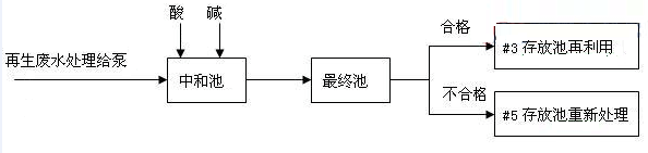 1、PH值控制程序,再生廢水處理后,PH值在6-9之間送至#3存放池以便再利用,PH值〈6或〉9時(shí)返回#5池重新處理。