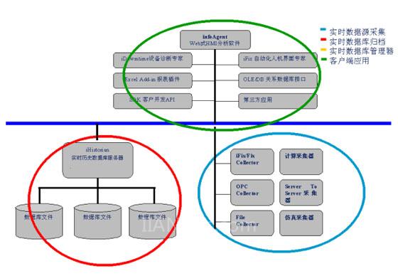 現(xiàn)場上位機安裝數(shù)據(jù)采集器后,一方面OPCServer將OPC Collector采集到的實時數(shù)據(jù)送至本機的iFIXSCADA建立過程數(shù)據(jù)庫,另一方面利用iHistorianOPC采集器將當?shù)豋PCServer中的實時數(shù)據(jù)送至iHistorian建立歷史數(shù)據(jù)庫,從而完成遠程監(jiān)視與診斷系統(tǒng)(RM&D)的數(shù)據(jù)采集、存儲功能;安裝在歷史數(shù)據(jù)服務器上的infoAgentServer提供建立歷史數(shù)據(jù)分析界面的Web服務。其中歷史數(shù)據(jù)服務器主要完成兩方面的功能: