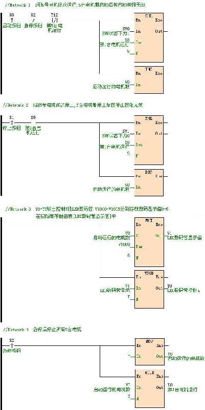 2. 這時第一次按動停止按鈕SB3:ON(一次),先停止第五臺電機M5,其它電機照常運行;第二次按動停止按鈕SB3:ON(一次),再停止第四臺電機M4;第三次按動停止按鈕SB3:ON(一次),是停止第三臺電機M3;…;第五次按動停止按鈕SB3:ON(一次),停止第一臺電機M1。至此五臺電機全部停止運行。