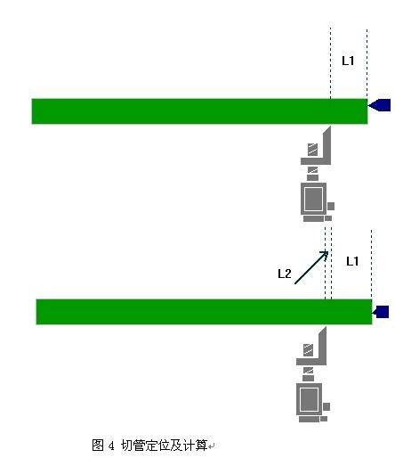 新型的雙軸伺服切管機(jī)與普通的切管機(jī)最關(guān)鍵的部分就是軸向定位和切管長(zhǎng)度控制及計(jì)算,新型切管機(jī)不需要平頭來(lái)做切管的定位,而是只需要讓伺服軸向往管方向走,等碰到了再進(jìn)行長(zhǎng)度定位,但是此方案需要高響應(yīng)和一定的程序編程技巧,上面提到的外部中斷進(jìn)行脈沖切換是一個(gè)比較快又比較準(zhǔn)的方案,通過(guò)圖4-切管定位及計(jì)算,可以看到切管的長(zhǎng)度分兩部分組成:L1:刀頭距,此距離可以進(jìn)行機(jī)械調(diào)整,一般調(diào)整完以后不需要作大的修改;L2:補(bǔ)償距離,此補(bǔ)償距離就是根據(jù)實(shí)際切的管的長(zhǎng)度需要作一個(gè)小的調(diào)整;所以切管長(zhǎng)度L=L1+L2。以往舊的切管機(jī)L1就等于切管的長(zhǎng)度,而且在空間上刀與頭的位置的絕對(duì)不變的,但是新的機(jī)器刀與頭的位置是整體隨軸在走的,這就是為什么新的機(jī)器可以一次送料多次切割的關(guān)鍵所在。