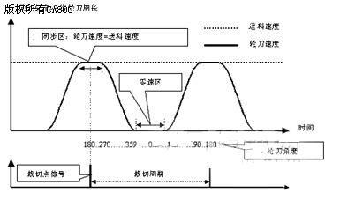 1. 在整個(gè)裁切循環(huán)中,當(dāng)裁切刀輪離開同步區(qū)域后,裁刀速度雖然也會下降,但不會降速至零速停止,不存在零速區(qū)域。