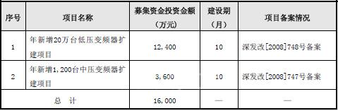 英威騰電氣本次發(fā)行前公司總股本4800萬股,本次擬發(fā)行1600萬股流通股,發(fā)行后總股本為6400萬股。公司本次募集資金擬投入以下兩個項目: