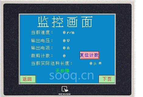 采用WEINVIEW的人機界面MT506MV隨時可以在觸摸屏上根據(jù)需要設(shè)定不同的裁剪長度以及裁剪速度的快慢。其操作界面如下圖所示: