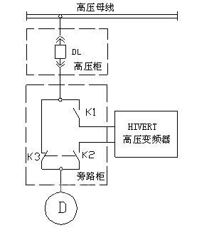 變頻運行:K1、K2閉合,K3斷開,由合閘斷路器DL為變頻器供電,再通過變頻器本地或遠程啟動電機變頻運行;