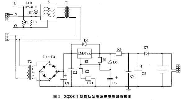 ZQZ-CⅡ型自動站電源充電電路如圖1所示。