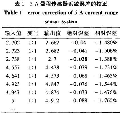 經(jīng)過多次重復測量,測量結(jié)果見表1,證實了調(diào)理電路存在系統(tǒng)誤差。此系統(tǒng)誤差有這樣幾個來源:5A電流傳感器誤差為±0.5%;PM3300功率分析儀測量誤差為±0.05%;采樣電阻的精度為±0.1%;接線誤差等。在這里將每路輸出用輸入值=輸出值÷(1-0.4%)的方法來減小系統(tǒng)誤差,實踐證明此方法是行之有效的。