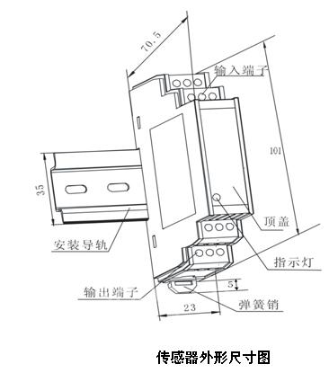 本系列產(chǎn)品均采用便于現(xiàn)場(chǎng)使用的端子接線、U型結(jié)構(gòu)卡裝方式。當(dāng)被測(cè)信號(hào)電壓大于600V時(shí),可以通過外接分壓電阻把測(cè)量范圍擴(kuò)大到1500V。
