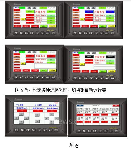 圖6為手動(dòng)控制,及參數(shù)設(shè)置,在剛開始運(yùn)行時(shí),手動(dòng)調(diào)整平臺(tái)位置及焊槍位置到合適的地方再開始自動(dòng)運(yùn)行。