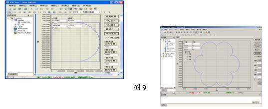 本控制方案采用了兩臺(tái)20PM,分別為20PM00M,20PM00D.特別提出的是20PM00M為三軸的運(yùn)動(dòng)控制器,可以實(shí)現(xiàn)三軸復(fù)雜的螺旋插補(bǔ)。如圖8所示本控制實(shí)現(xiàn)偏心圓軌跡的控制就用到了這個(gè)功能。這個(gè)功能用普通PLC是完全實(shí)現(xiàn)不了的。