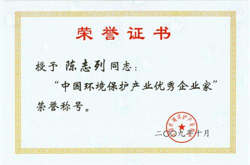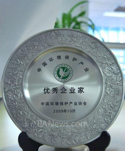 2009年11月17日,中國環(huán)境保護產(chǎn)業(yè)優(yōu)秀企業(yè)家評選表彰大會在北京召開,研祥智能科技股份有限公司董事局主席陳志列有幸獲此殊榮。研祥集團副總裁陳英女士代為領(lǐng)取了證書和獎杯。
