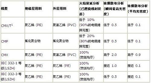 由此可知,材料選用對于電纜的防火能力有極大的影響。以 CMX 電纜為例,雖然該電纜基于成本考慮,外層選用阻燃性較佳的 PVC 材料,但因內(nèi)部以 PE 做為絕緣層,反而使得這樣的組合展現(xiàn)最差的測試結(jié)果。