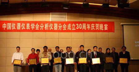 在分析儀器30年回顧招待晚宴上,共有18家企業(yè)榮膺“中國分析儀器發(fā)展貢獻(xiàn)獎”,中國儀器儀表行業(yè)協(xié)會朱明凱副理事長、中國儀器儀表學(xué)會分析儀器分會閆成德理事長、國家地質(zhì)實驗測試中心李家熙研究員、浙江大學(xué)分析儀器研究中心金欽漢教授、中國儀器儀表學(xué)會農(nóng)業(yè)儀器應(yīng)用技術(shù)分會蔣士強(qiáng)副理事長、清華大學(xué)化學(xué)系鄧勃教授、北京化工研究院胡滿江教授級高工、浙江省儀器儀表學(xué)會馬可人秘書長為獲獎單位頒獎。 附:獲“中國分析儀器發(fā)展貢獻(xiàn)獎”企業(yè)名單( 排名按漢語拼音字母順序排序):