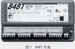 圖3所示為848飛的外觀圖,在該圖的下部標有INPUTl~8的端子為8個通道的模擬量信號輸入端子,從左至右每3個端子對應1個通道,每個通道的3個進線端子從左至右標有端子1、2、3。