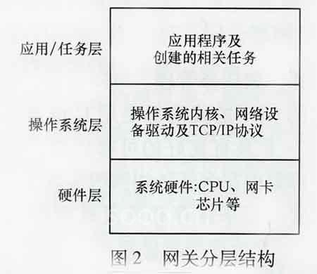 網關的設計過程中,自上而下分為三層:應用/任務層、操作系統層和硬件層。分層結構如圖2所示。