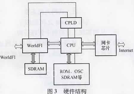 硬件層設計主要包括選擇合適的芯片及進行原理設計。在本設計中,選用Samsung公司的ARM 32bits芯片s3c451Ob微處理器,它的運行速率為5OMHz,帶有Ethernet控制器;網卡芯片使用ICS1890;WorldFIP側選用的芯片是符合WorldFIP現場總線協議的專用芯片(Fullfip2、FIPDUAL等);CPLD選用ALTERA公司的EPM7128SLC84,主要用于s3c4510b和Fullfip2之間的時序匹配和邏輯組合;SDRAM選用Hynix的HY57v64323220,主要用于任務堆棧和中間變量;flash選用SST的39VF169,主要用于存放程序;SRAM選用ISSI的IC61C1024,主要用于存放Fullfip2的微碼和中間變量。硬件結構如圖3所示。