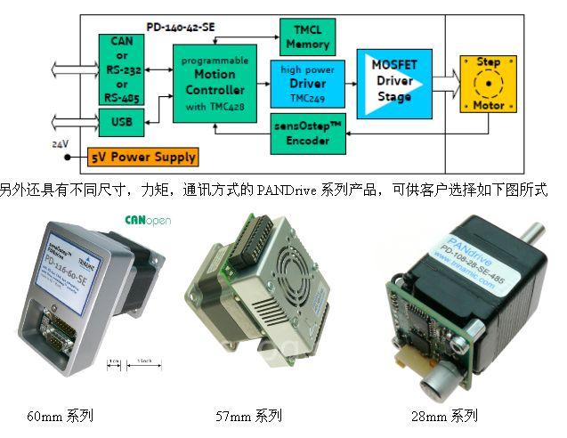 TRINAMIC產(chǎn)品的一個(gè)主要的特點(diǎn)就是集成度非常高,比如其PANdrive系列的產(chǎn)品,舉其中一款產(chǎn)品PD-140-42為例。