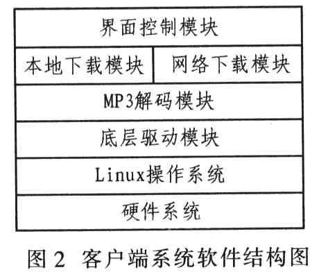 嵌入式系統(tǒng)由底層硬件、設(shè)備驅(qū)動(dòng)、操作系統(tǒng)、應(yīng)用中間軟件及應(yīng)用系統(tǒng)5部分組成?;谇度胧较到y(tǒng)的MP3音頻點(diǎn)播系統(tǒng)可廣泛用于卡拉OK廳、語音教室和公共廣播等許多場(chǎng)所,它由一個(gè)網(wǎng)絡(luò)服務(wù)器和多個(gè)客戶端播放器組成,是基于局域網(wǎng)的C/S結(jié)構(gòu)的點(diǎn)播系統(tǒng)。首先在服務(wù)器中存儲(chǔ)豐富的歌曲,用戶可通過播放器自帶的網(wǎng)絡(luò)功能登陸服務(wù)器,以獲取歌曲進(jìn)行播放.同時(shí)該點(diǎn)播系統(tǒng)也可通過USB存儲(chǔ)設(shè)備播放本地歌曲,也可將服務(wù)器上的音樂下載到本地USB存儲(chǔ)設(shè)備上。