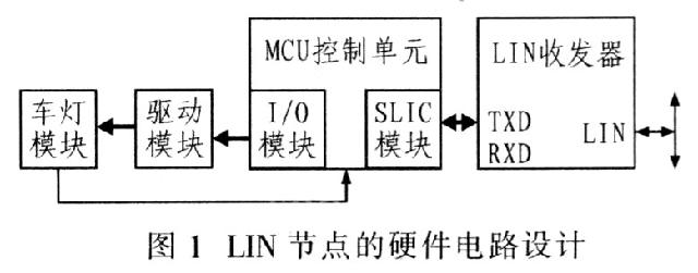 基本的LIN節(jié)點(diǎn)電路主要包括MCU、LIN收發(fā)器、電源模塊和車燈驅(qū)動(dòng)電路。