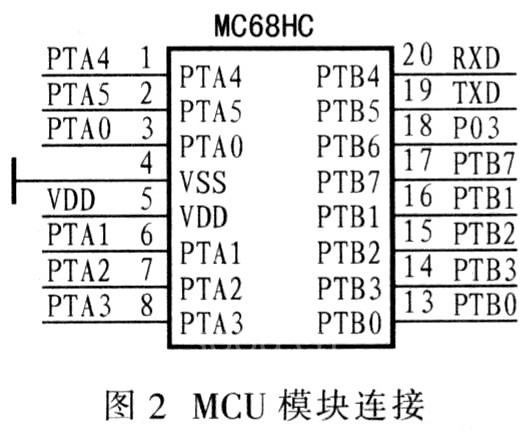 只要按模塊的需要設(shè)置相應(yīng)的寄存器,就可以自動(dòng)按照LIN總線協(xié)議進(jìn)行和發(fā)送數(shù)據(jù)。這相對(duì)于SLIC模塊的單片機(jī)而言,則降低了軟件開發(fā)上的難度。MCU模塊的連接如圖2所示。
