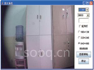 在監(jiān)控端采用Java編寫的監(jiān)控管理軟件,通過串口、波特率、延時(shí)時(shí)間、紅外燈、圖片尺寸、圖像傳輸時(shí)間等方面調(diào)節(jié),向無線傳感器網(wǎng)絡(luò)發(fā)送監(jiān)控命令,接收傳感數(shù)據(jù)信息,實(shí)現(xiàn)圖像數(shù)據(jù)的處理、接收、存儲(chǔ)和顯示等,將來自無線傳感器網(wǎng)絡(luò)的大量感知數(shù)據(jù),以直觀的方式呈現(xiàn)給工作人員。仿真結(jié)果如圖6所示。
