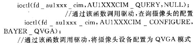 其成員函數(shù)分別完成了與Au1200 CIM接口相連攝像頭設(shè)備的打開、控制、讀寫、映射以及釋放等基本功能。例如通過ioctl操作對(duì)攝像頭進(jìn)行配置: