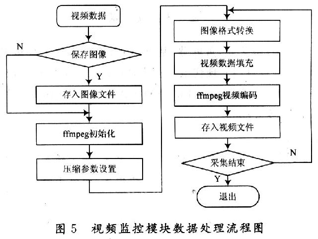 (2)視頻監(jiān)控?cái)?shù)據(jù)存放部分:通過ffmpeg軟壓縮方法,將采集到的視頻數(shù)據(jù)按指定視頻格式實(shí)時(shí)壓縮成文件存儲(chǔ)于硬盤中。