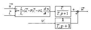 這樣利用模型參考自適應(yīng)方法就可以同時(shí)獲得電機(jī)的磁鏈和轉(zhuǎn)速信息,一定程度上簡(jiǎn)化了系統(tǒng)的結(jié)構(gòu)。MRAS是基于觀測(cè)器的穩(wěn)定性設(shè)計(jì)的辨識(shí)方法,它保證了參數(shù)估計(jì)的漸進(jìn)收斂性。由于MRAS的觀測(cè)器是以參考模型為基準(zhǔn)的,參考模型本身的參數(shù)準(zhǔn)確程度直接影響到速度和磁鏈辨識(shí)的精度。為消除電壓模型中純積分的影響,可以對(duì)電壓模型進(jìn)行改進(jìn):利用一階慣性環(huán)節(jié)代替對(duì)反電動(dòng)勢(shì)的純積分環(huán)節(jié),慣性環(huán)節(jié)所引進(jìn)的狀態(tài)估計(jì)相位滯后由參考轉(zhuǎn)子磁鏈的濾波信號(hào)來(lái)補(bǔ)償。本系統(tǒng)中所采用的改進(jìn)的電壓模型如圖2所示: