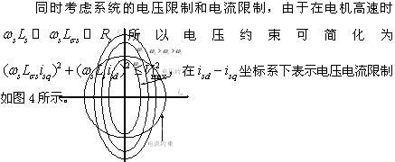 此種方法不受電機(jī)參數(shù)的影響,便于工程實(shí)現(xiàn),但是沒(méi)有考慮全部電機(jī)運(yùn)行約束的限制,無(wú)法合理分配電流以使轉(zhuǎn)矩最大化,而且由于電機(jī)內(nèi)部 ,所以此算法無(wú)法保持勵(lì)磁電壓恒定,勵(lì)磁電壓會(huì)隨著轉(zhuǎn)速的上升而不斷增大,可能導(dǎo)致電流無(wú)法有效跟隨,影響運(yùn)行穩(wěn)定性。