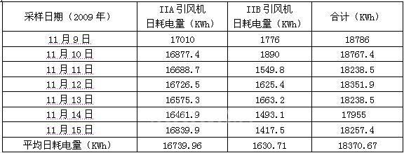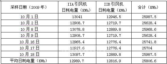 由表二的統(tǒng)計數(shù)據(jù)可知,改造后經(jīng)過計算#2鍋爐兩臺引風(fēng)機每天的平均電量約為18370.67KWh