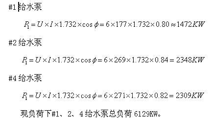 考慮#1、2給水泵為液力耦合器拖動,其η不超過0.90,#4給水泵變頻改造后給水泵總負荷約5575KW。