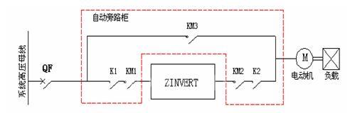 自動變頻切換工頻過程:電機變頻運行時,變頻器接收到“變頻切工頻”的信號后,自動斷KM1、KM2,然后合KM3,電機工頻運行。自動工頻切換變頻過程:電機工頻運行時,變頻器接收到“變頻切工頻”的信號后,自動斷開KM3,然后合上KM1,最后合KM2,啟動電機變頻運行。在變頻器出現(xiàn)嚴重故障時(除負載故障外),負載能夠自動轉(zhuǎn)入工頻電網(wǎng)中,切開變頻調(diào)速系統(tǒng),并且負載不用停機;另外在工頻旁路運行的情況下可以通過斷開K1和K2檢修變頻器。