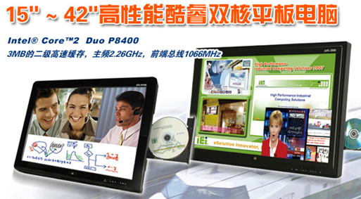 上海,12月10,2009,威強(qiáng)近期推出具有高性能15寸 ~ 42寸大屏幕的AFOLUX酷睿雙核平板電腦,為廣大用戶提供低成本、高性能、高清晰產(chǎn)品。威強(qiáng)AFOLUX酷睿雙核平板電腦,配有Intel? Core 2 Duo P84003MB的二級(jí)高速緩存,主頻2.26GHz,前端總線1066MHz,15寸 ~ 42寸的尺寸選擇,可以滿足不同領(lǐng)域用戶的需求。