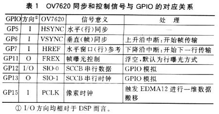 OV7620是OmniVision公司生產(chǎn)的CMOS彩色/黑白圖像傳感器,在本系統(tǒng)中被配置為16位逐行掃描QVGA方式,RGB原始數(shù)據(jù)輸出,分辨率為320×240,SCCB總線,內(nèi)部默認的行曝光方式;同時使能HREF信號對PCLK進行門控,即只有當(dāng)HREF有效時像素時鐘信號才被輸出到PCLK引腳上,否則該引腳保持無效。這樣EDMA可以始終處在使能狀態(tài),從而簡化采集過程。
