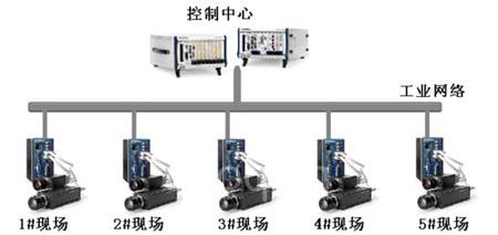 NI的虛擬儀器技術使用成熟的計算機技術和模塊化的高性能硬件為我們系統(tǒng)的實現(xiàn)提供了強有力的支持。PXI系統(tǒng)能提供最佳的性能,Compact Vision System(CVS) 系統(tǒng)是NI公司PAC(可編程自動控制器)系列產(chǎn)品中專門用于視覺采集檢測的產(chǎn)品,提供了最為堅固的硬件結構。 整個檢測系統(tǒng)是一個利用NI CVS和PXI產(chǎn)品建立起來的高性能集成化實時系統(tǒng),其中PXI系統(tǒng)由嵌入式實時PXI控制器PXI- 8146 RT和PXI機箱等模塊組成,在本系統(tǒng)中承擔著控制中心的重要作用;實時緊湊視覺系統(tǒng)使用了CVS-1450,在本系統(tǒng)中擔當前端工業(yè)現(xiàn)場的圖像采集和測量系統(tǒng)地初步處理的任務。分布在多個生產(chǎn)流程的CVS系統(tǒng)通過1394攝像頭采集數(shù)據(jù)并進行前端處理,之后通過工業(yè)以太網(wǎng)將數(shù)據(jù)傳輸給PXI控制中心。(如圖1所示)