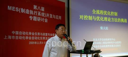 中國(guó)工程院院士柴天佑教授一直關(guān)心和支持我們這個(gè)研討會(huì),在百忙之中專程來(lái)滬,作了題為《全流程優(yōu)化控制對(duì)控制與優(yōu)化理論方法的挑戰(zhàn)》的專題報(bào)告。他分析了從局部?jī)?yōu)化、動(dòng)態(tài)優(yōu)化到實(shí)現(xiàn)全局優(yōu)化的整個(gè)優(yōu)化控制過程中的數(shù)據(jù)調(diào)和、模型更新和穩(wěn)態(tài)優(yōu)化與校驗(yàn);指明了未來(lái)的發(fā)展方向是在市場(chǎng)需求、節(jié)能降耗和環(huán)保等約束條件下,實(shí)現(xiàn)基于數(shù)據(jù)和知識(shí)的企業(yè)生產(chǎn)制造全流程運(yùn)行綜合指標(biāo)的智能優(yōu)化決策方法。他深刻指出,MES積累了生產(chǎn)管理專家、信息技術(shù)專家、自動(dòng)化專家和設(shè)備維護(hù)專家等多方面的知識(shí)和智慧,將管理人員從繁重的人工勞動(dòng)中解脫出來(lái),以實(shí)現(xiàn)全流程的生產(chǎn)控制和優(yōu)化為目標(biāo),必將成為最優(yōu)秀的管理者中的佼佼者。他還強(qiáng)調(diào)“技術(shù)創(chuàng)新帶動(dòng)學(xué)術(shù)發(fā)展”的觀點(diǎn),增強(qiáng)了廣大中青年技術(shù)人員探索技術(shù)創(chuàng)新信心,鼓舞了干勁。報(bào)告時(shí)間不長(zhǎng),由淺入深、引人入勝、給人啟迪。