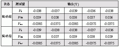 將傾角傳感器放在振動臺上進(jìn)行振動試驗,振動試驗的技術(shù)條件如表4所示。記錄振動試驗前后傾角傳感器的零位輸出V0、V180和Vout。其試驗數(shù)據(jù)如表5所示。