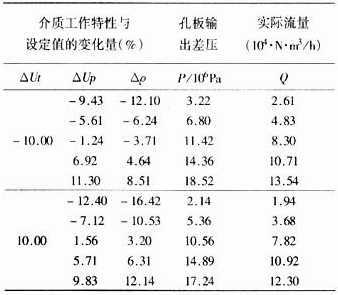 在用孔板進行流量測量時,設(shè)被測實際流量為Q,孔板的輸 出差壓為p。工作中,孔板的測量結(jié)果還受到被測介質(zhì)的溫度、壓力和密度與設(shè)定的介質(zhì)溫度、壓力和密度的偏差量Δt、Δp、Δρ的影響,被測實際流量Q實際上為四元函數(shù),即Q=f(Δt,Δp,Δρ,p)。因此,在使用孔板的同時,采用