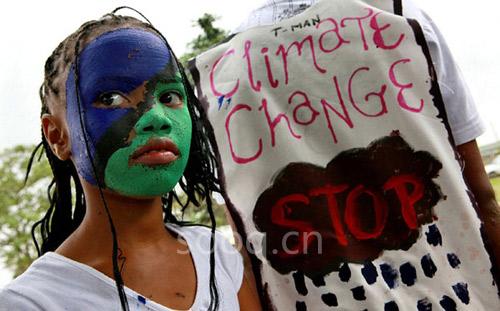 南非的環(huán)保人士舉行活動(dòng),以此呼吁關(guān)注氣候變化。