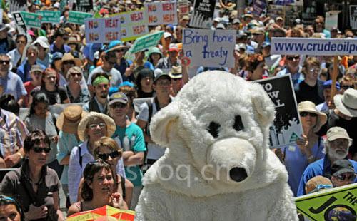 12月12日,澳大利亞的環(huán)保人士在悉尼舉行游行活動(dòng),以此呼吁關(guān)注氣候變化。