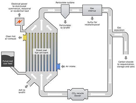 煤碳很黑很臟,燃料電池大多都是采用氫燃料,這些傳統(tǒng)的觀念已在人們的意識中根深蒂固。但是,新一代的“直接碳”燃料電池將挑戰(zhàn)這種傳統(tǒng)觀念。在傳統(tǒng)氫燃料電池中,氫燃料的獲得過程比較復雜。“直接碳”燃料電池則是利用氧氣與煤粉之間的電氣化學反應來產生電量。這種技術的好處是:發(fā)電所需要的燃料(煤碳)不再需要燃燒,而且能源利用效率比傳統(tǒng)的燒煤電站高出兩倍。美國加利福尼亞州“直接碳科技公司”預計,到2010年,該公司將實現一個10千瓦容量的原型發(fā)電系統(tǒng)。而俄亥俄州的“包含能源公司”則準備利用這種技術為一個小型燈泡提供電力。當然,這項技術仍處于初期階段。兩家公司都希望能夠根據這些原型系統(tǒng)研制出“直接碳”燃料電池,提供一種清潔、高效的碳能源。